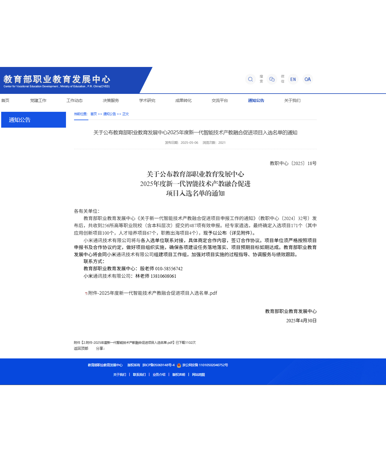 5月6日,教育部职业教育发展中心公布了《2025年度新一代智能技术产教融合促进项目入…