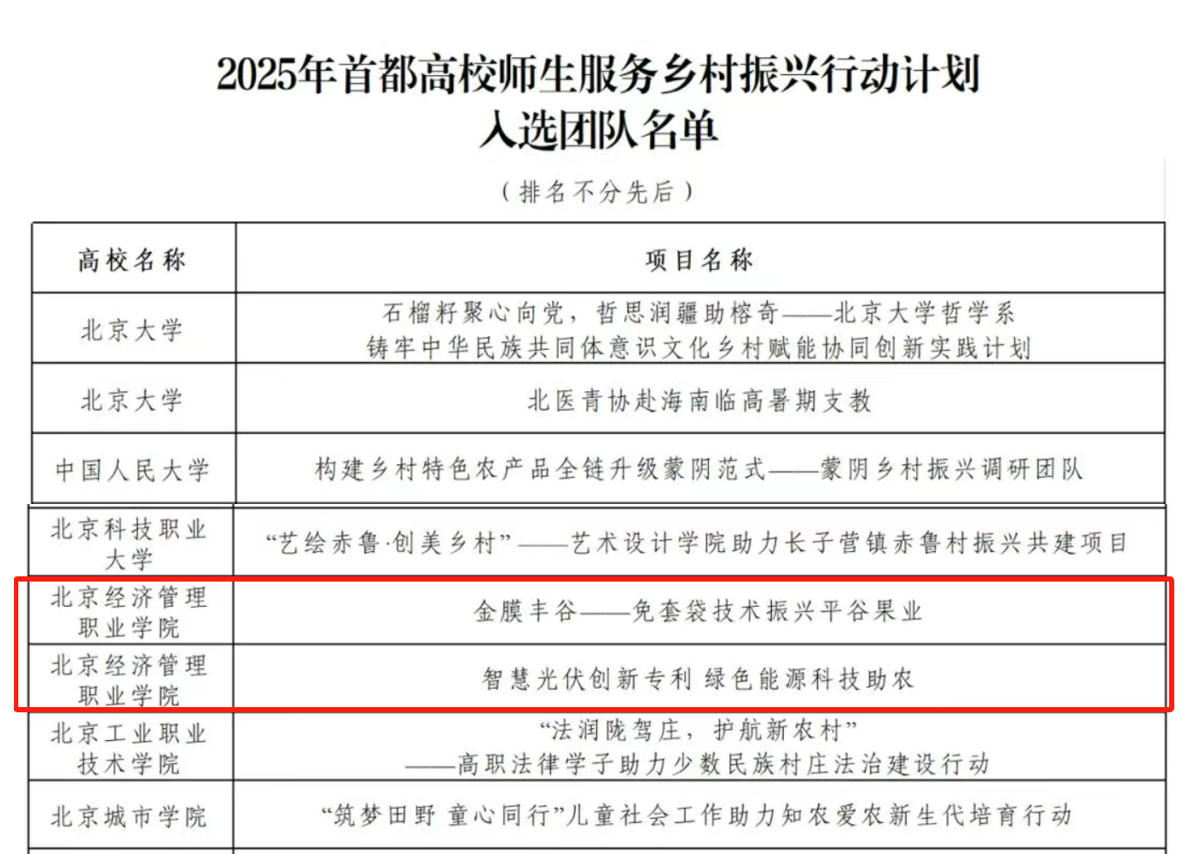 bat365在线平台两支团队成功入选2025年首都高校师生服务乡村振兴行动计划