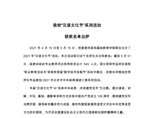 为落实《教育部等十部门关于做好2021年职业教育活动周相关工作的通知》,配合北京市…