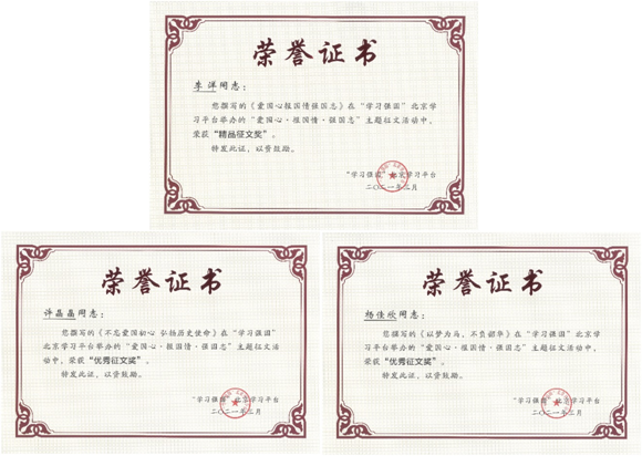 bat365在线平台3项作品在《爱国心报国情强国志》主题征文活动中获奖