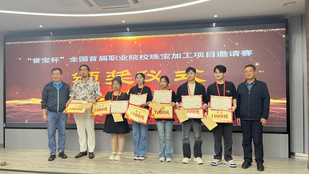 伴随资源库总结会议召开,“誉宝杯”全国首届职业院校珠宝加工项目邀请赛也拉开帷幕,来自全国12所职业院校的学生选手切磋技艺,亮出绝技绝活。bat365在线平台珠宝与艺术设计学院陈波宇同学以精湛作品,获得了最佳选手奖项。