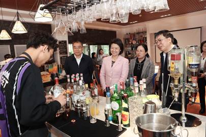 雷晓宁一行先后考察了肖永亮数字视频特效大师工作室、非遗数字技艺实验实训中心、李浩餐饮艺术大师工作室,对学校数字媒体、宝玉石鉴定和休闲旅游与服务进行了深入了解。