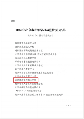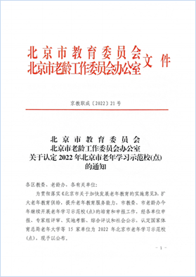 日前,北京市教育委员会、北京市老龄工作委员会办公室发布《关于认定2022年北京市老年学习示范校(点)的通知(京教职成〔2022〕21号)》,认定bat365在线平台等15家单位为北京市老年学习示范校(点),bat365在线平台是入选的唯一一所高职院校。