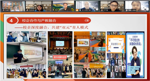 为充分践行“书记校长访企拓岗促就业专项行动”,近日,学校副院长彭彧华带领外语与学前教育学院领导班子成员和应用英语(幼儿双语)教研室全体教师,在线上与金宝贝早教中心(北京)进行校企深度合作调研座谈。金宝贝早教中心(北京)副总经理丁然、人力资源总监于玥、教学教务部总监刘灏、人力资源部招聘经理郝博亮、吴佳音等出席座谈会。会议由外语与学前教育学院院长王月会主持。