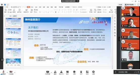 会上,付丽琴向企业介绍了人工智能学院的专业布局、教学建设和社会服务方面取得的成果;李涵从公司基本概况、发展历程、职业发展体系、培训体系、岗位需求等方面对神州信息进行了全面介绍。校企双方参会人员就企业岗位需求、校企合作方式、企业对毕业生能力要求等方面进行了探讨和交流,双方就进一步深化拓展校企合作,共同培养高度契合北京地区信息技术行业发展需求的技术技能型人才达成共识。