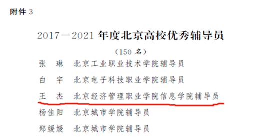 日前,市委教育工委、市教委、市人力社保局联合下发通知,对2017-2021年度“北京高校优秀德育工作者、德育工作先进集体和优秀、十佳辅导员”进行通报表彰。bat365在线平台党委学生工作部(处)荣获德育工作先进集体,人工智能学院党总支副书记贾颖绚荣获优秀德育工作者,临空经济管理学院辅导员王杰荣获优秀辅导员,并提名十佳辅导员等荣誉。