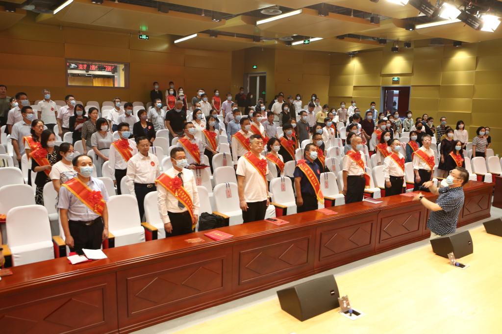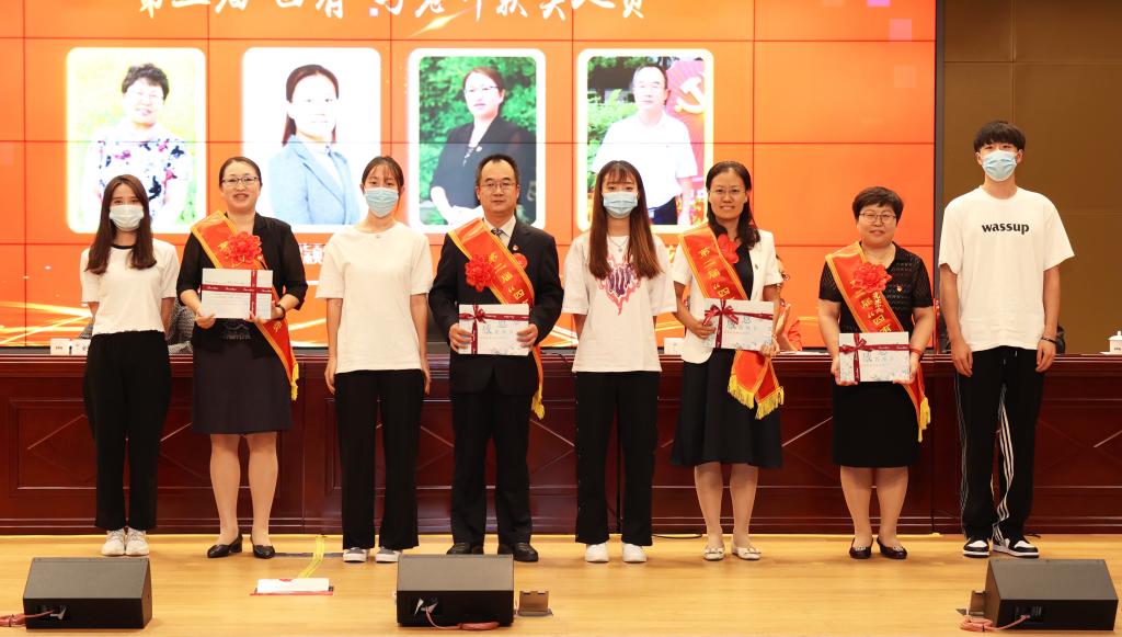 在全体教师齐声合唱《中华人民共和国国歌》后,张懿宣读了对从教满30年教职工、2020-2021年教育教学类获奖项目以及第二届“四有”好老师的表彰决定,学校领导为获奖人员及项目代表颁发荣誉证书,表彰学校从教满30年的教职员工以及过去一年来在学校教育教学、“五育”并举中取得优异成绩的先进集体和个人。