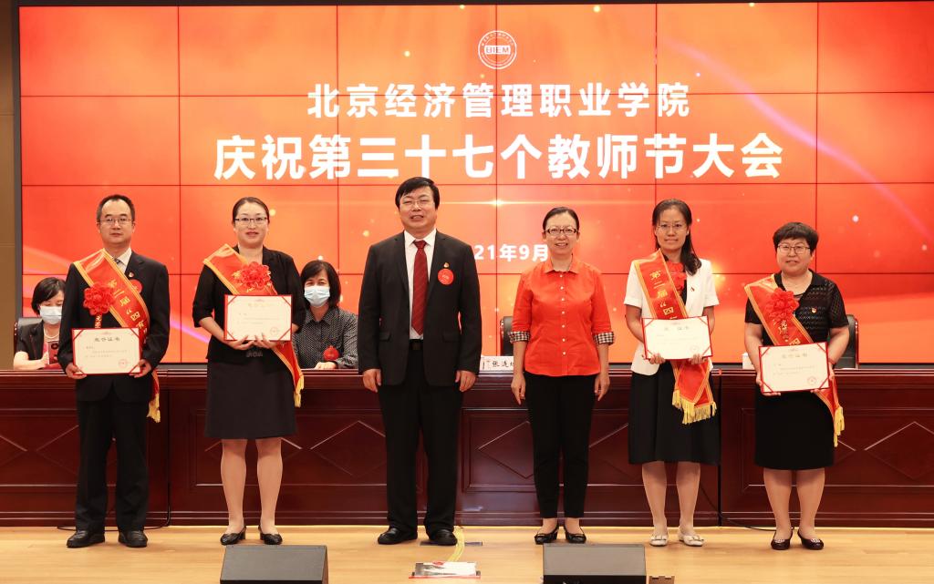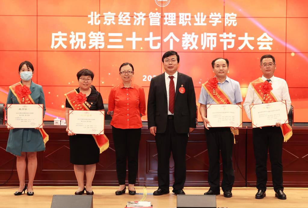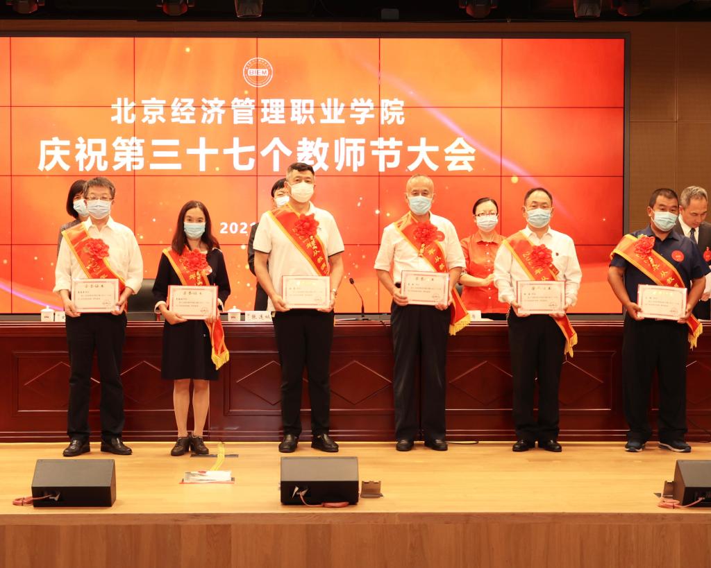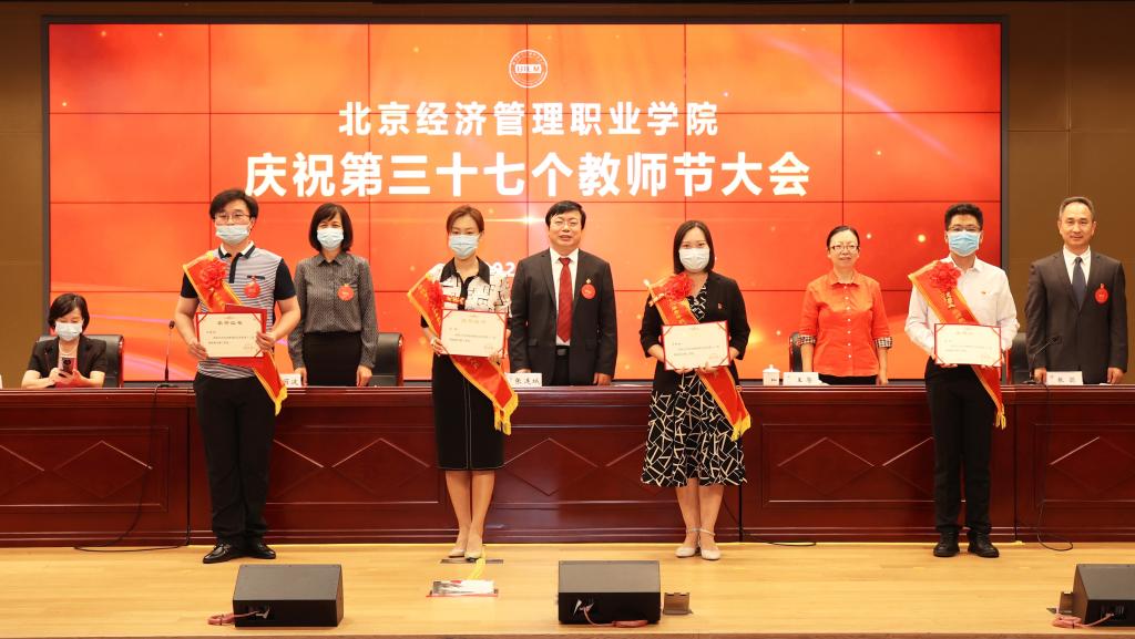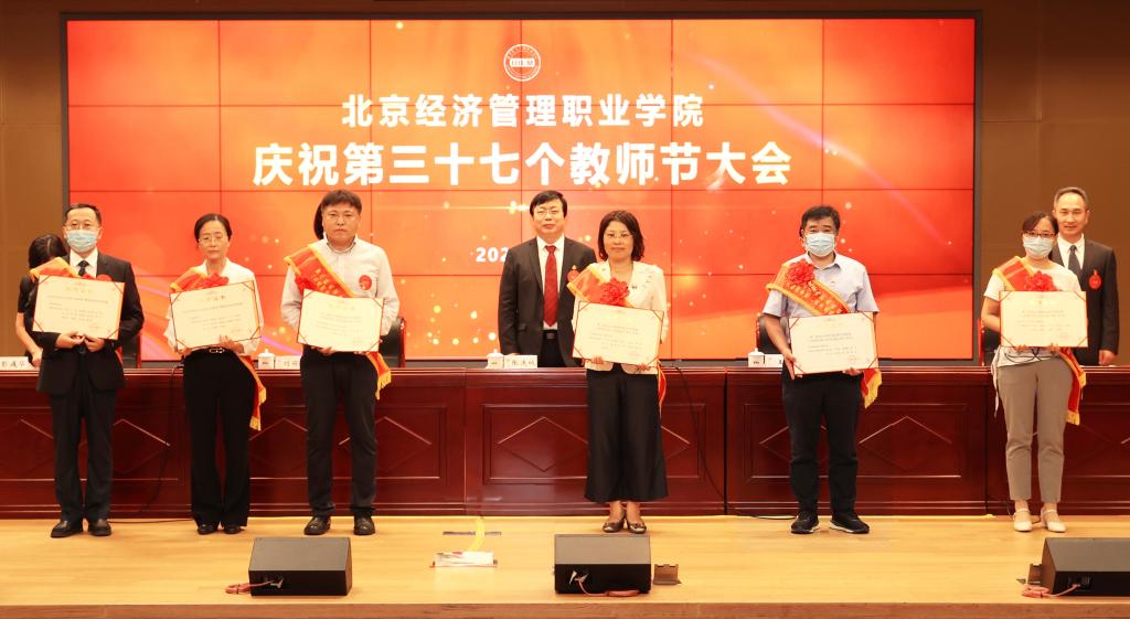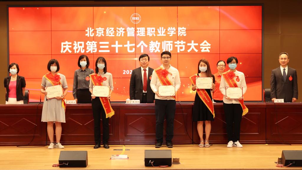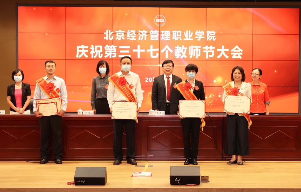 校领导为2020年北京市职业院校专业创新团队、北京市大学生人文知识竞赛获奖指导教师团队、首都高等学校第58届学生田径运动会丙组男子团体第四名体育教研室团队、第七届北京高校辅导员素质能力大赛获奖人员颁奖