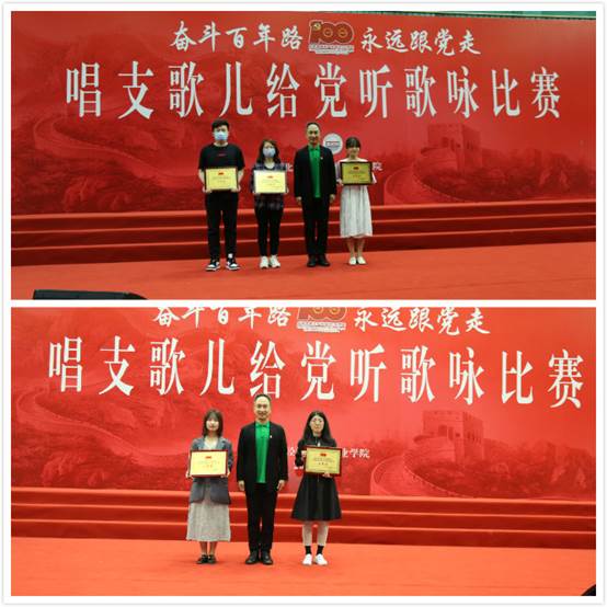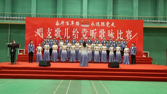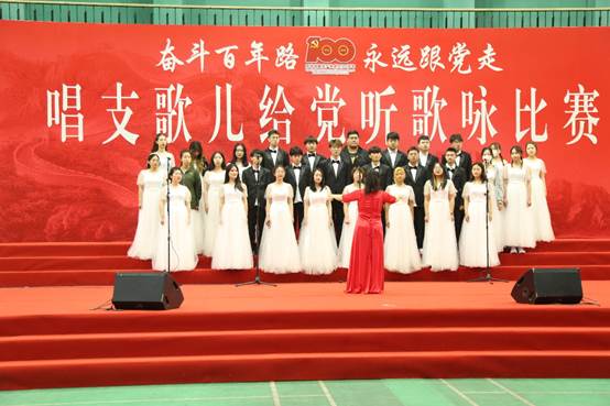 会计与金融学院、管理学院、珠宝与艺术学院、外国语学院、工程技术学院、信息学院分别演唱了《国家》《我的中国心》《唱支山歌给党听》《歌唱祖国》《我和我的祖国》等自选曲目,一首首经典的歌曲,唱出了对党、对祖国的挚爱深情;一段段激情澎湃的旋律,点燃了在场同学们爱党、爱祖国的热情,赢得了现场观众的阵阵掌声。除了男女合唱外,各参赛队伍也融入了不同元素,如朗诵、表演、演奏等,以丰富多样的形式,歌颂党的光辉历程。