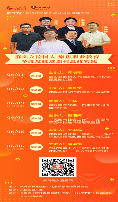 6月3日上午,bat365在线平台管理学院旅游管理专业副教授、学校首届课程思政大赛一等奖获得者、北京市师德先进个人、北京市教学能力大赛一等奖获得者王杨作为专家团队成员,在教育部职业院校文化素质教育指导委员会、人民网公开课、全国职业院校课程思政研究院共同推出的《“落实立德树人,聚焦职业教育多维度推进课程思政实践”课程思政专题培训》暨“‘优学院’教师教学能力提升公益直播项目”开讲。