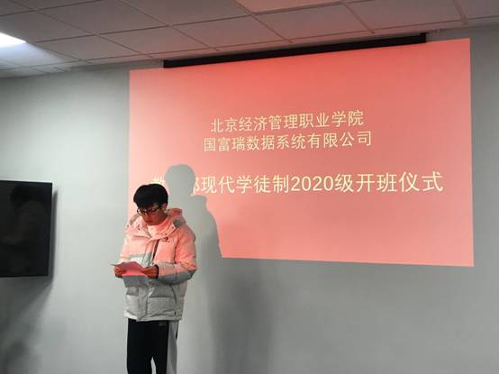 2020级现代学徒制新生代表薛博乐也在会议上发言,承诺在校企合作,双重育人的机制下要抓住机遇,通过学校和企业提供的优质平台和资源,好好学习,争取早日成为大数据运维行业的专业人才。