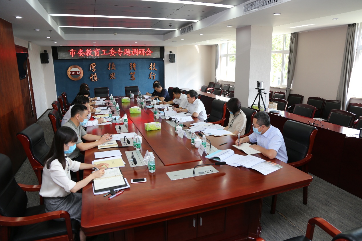 市委教育工委研究室主任庞成立,党建工作处(巡察办)处长吴洁,党建工作处(巡察办)二级调研员吴雪疆一同调研,学校领导及相关部门、单位负责人参加了调研座谈会。