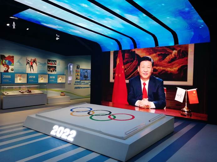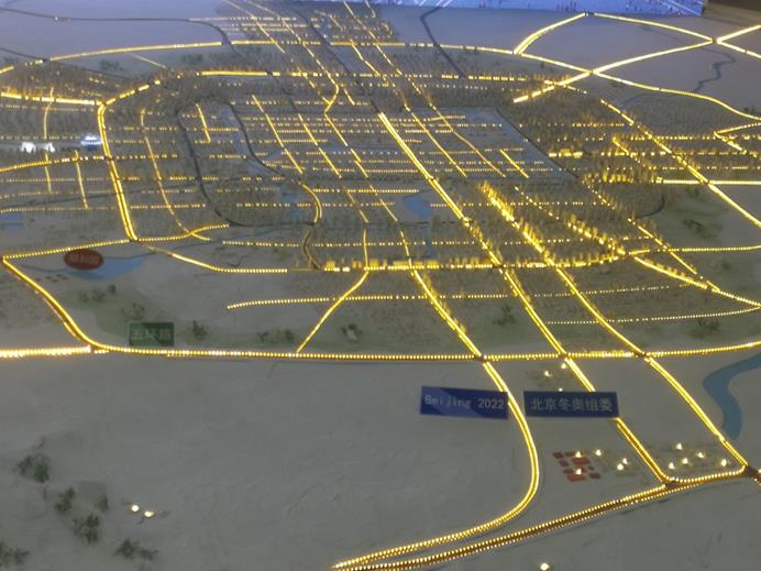 在冬奥整体规划沙盘区域,通过视频和声光电技术生动、立体地呈现,大家全方位地了解了北京、延庆、张家口三个赛区地理地貌、历史文化,以及场馆设施建设推进情况,大家充分感知到了中国速度、中国标准所带来的震撼。