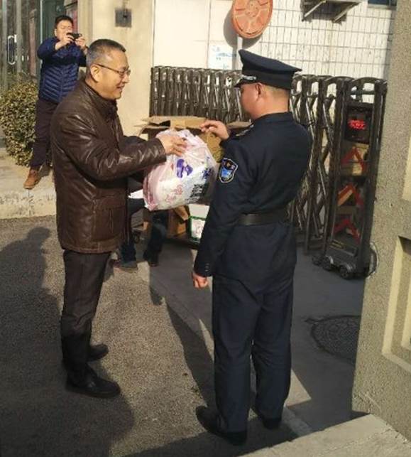 为坚守岗位的安保人员送上慰问品