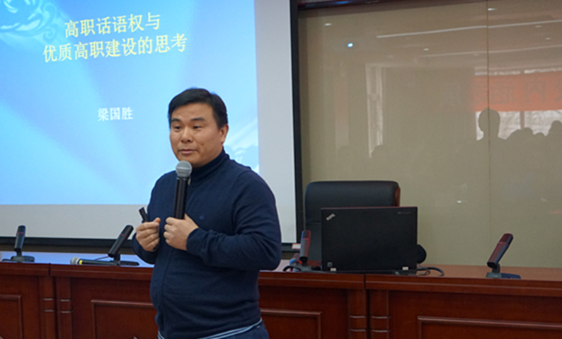 中国青年报教育科学部副主任、职业教育版主编梁国胜作“高职话语权与优质高职建设的思考”专题报告。