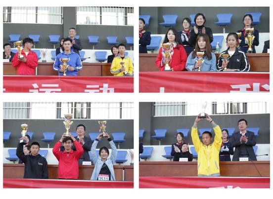 闭幕式上,运动会总裁判长孙克军宣布了比赛成绩。校领导为获得男子总分、女子总分、团体总分前三名以及精神文明奖的单位颁发了奖杯。