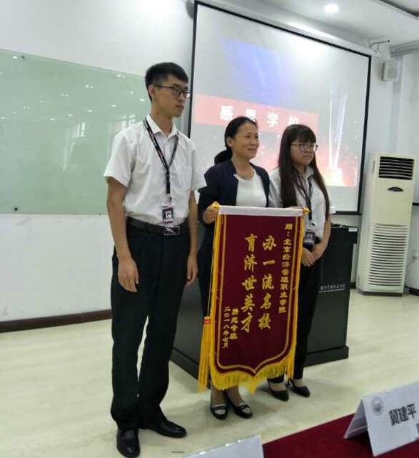 结业仪式上,播放了记录了同学们在校学习、生活的视频,同学们用精心制作的视频表达了对母校的感恩之情和离别的不舍。联想班驻场教师刘金勇总结了两年来同学们取得的进步。联想专班的就业率达到了100%,创下了bat365在线平台校企合作特色班级的优秀典例。优秀毕业生代表申园园同学作了发言,代志宇、俞姝君同学代表联想班向学校