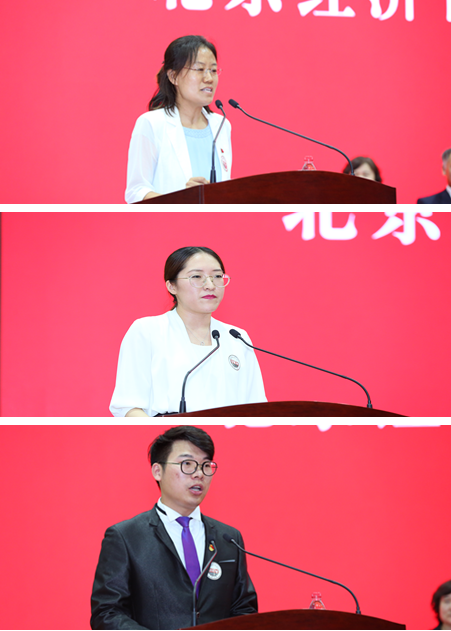 教师代表贾颖绚、校友代表何园园、毕业生代表陈阳发言