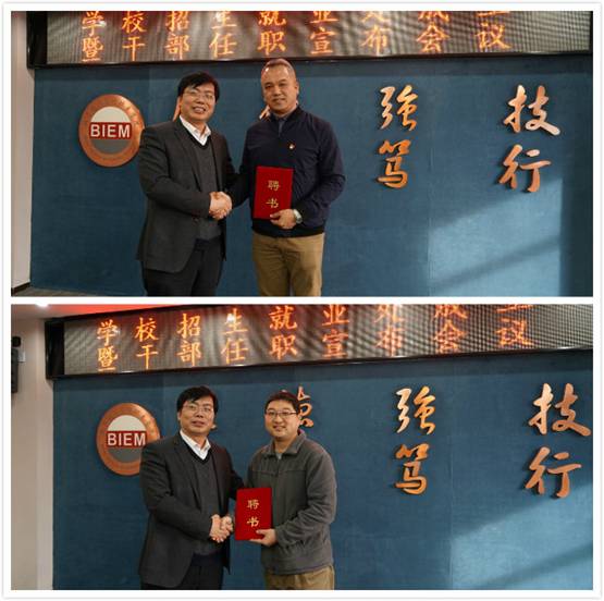 副院长魏中龙宣布了bat365在线平台关于成立招生就业处的通知和干部任免通知,于瑞任招生就业处处长(兼),张玉涛任招生就业处副处长(免去教务处副处长职务)。党委书记张连城为于瑞、张玉涛颁发了任职证书。于瑞、张玉涛做了表态发言。