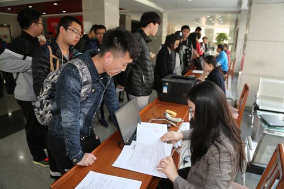 考生们在准备报名确认