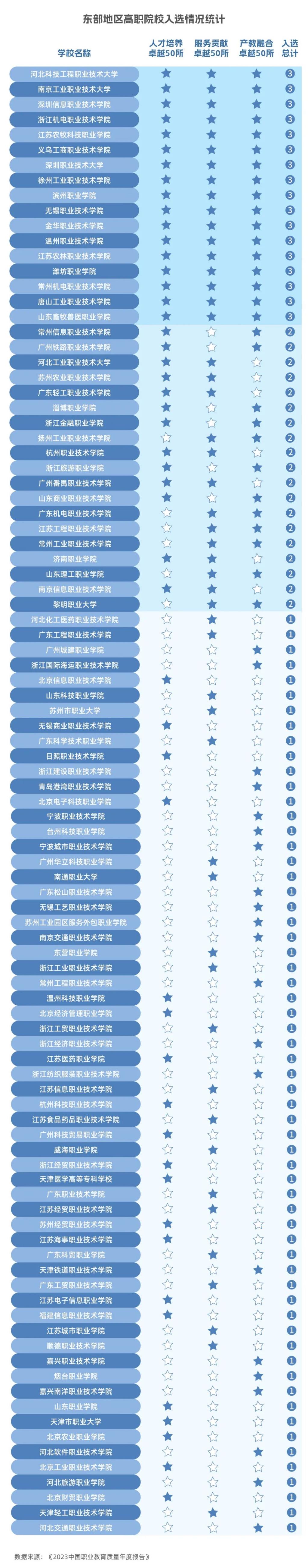 东部地区高职院校入选统计