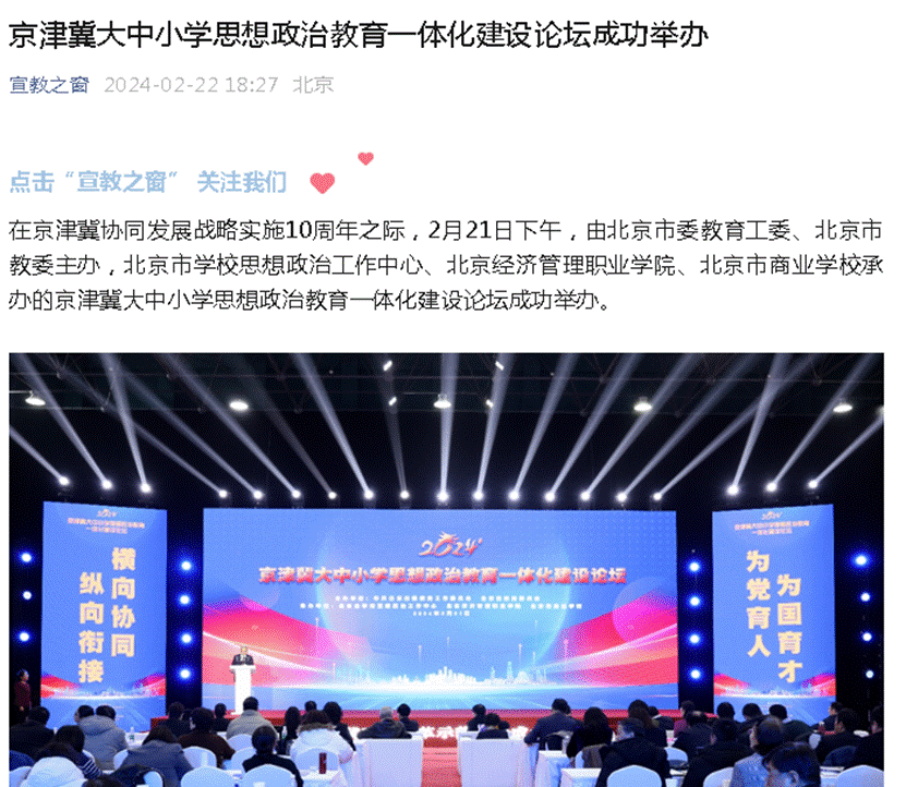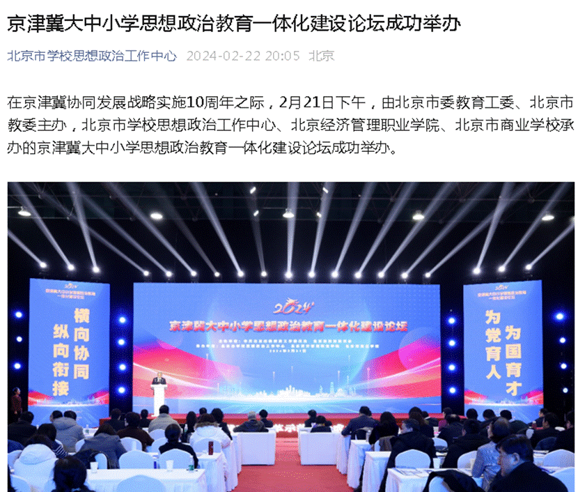 北京市学校思想政治工作中心报道京津冀大中小学思想政治教育一体化建设论坛