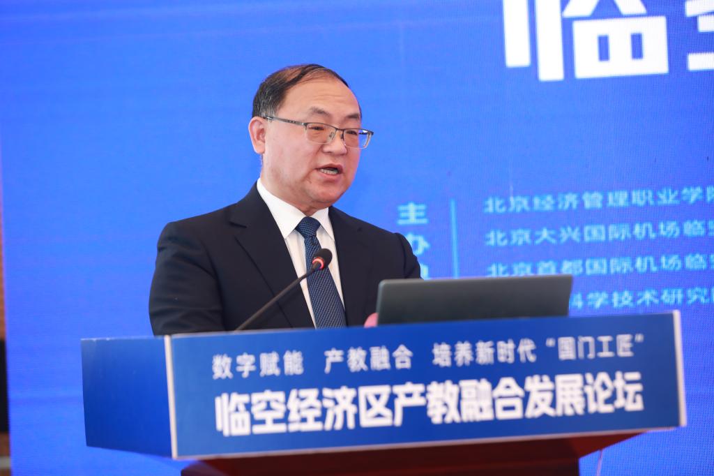 北京大兴国际机场临空经济区联合管理委员会副主任黄玉刚到会致辞。他表示,大兴国际机场临空经济区联合管理委员会将充分发挥大兴机场临空经济区的产业特色优势,大力支持京津冀职教改革示范园区高标准建设,逐步探索与高校合作创新临空经济产业人才培养协同机制,深化临空经济特色领域产教融合,加速培育临空经济区产业高素质应用型、复合型、创新型人才。