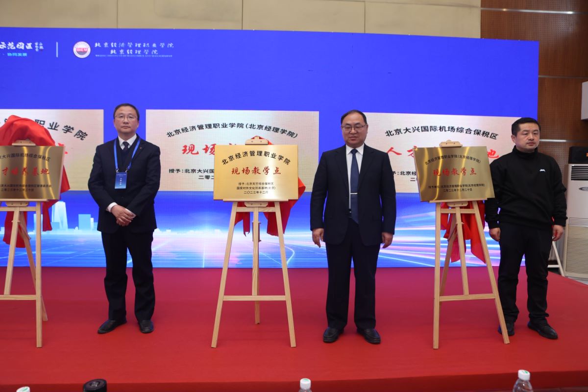 在校企签约和揭牌仪式环节,合作双方共同为北京大兴国际机场综合保税区人才培养基地、bat365在线平台现场教学点,北京天竺综合保税区现场教学点、京津冀物流人才培养联盟揭牌。bat365在线平台分别与京东乾石科技有限公司、北京航服职教集团进行了校企签约。