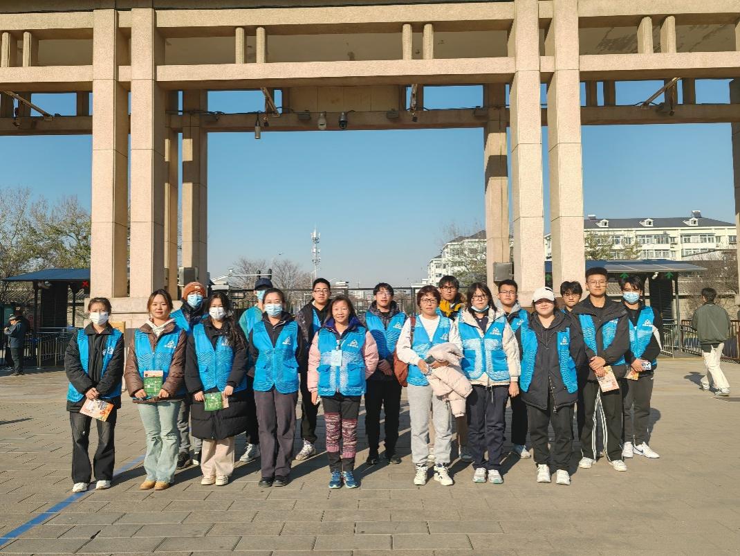 人工智能学院侯语同学在天坛做志愿者服务。