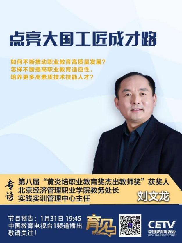 bat365在线平台委员、教务处处长、实践实训办公室主任刘文龙教授作为第八届黄炎培职业教育奖100位“杰出教师奖”之一,受邀参加中国教育电视台《育见》节目录制。