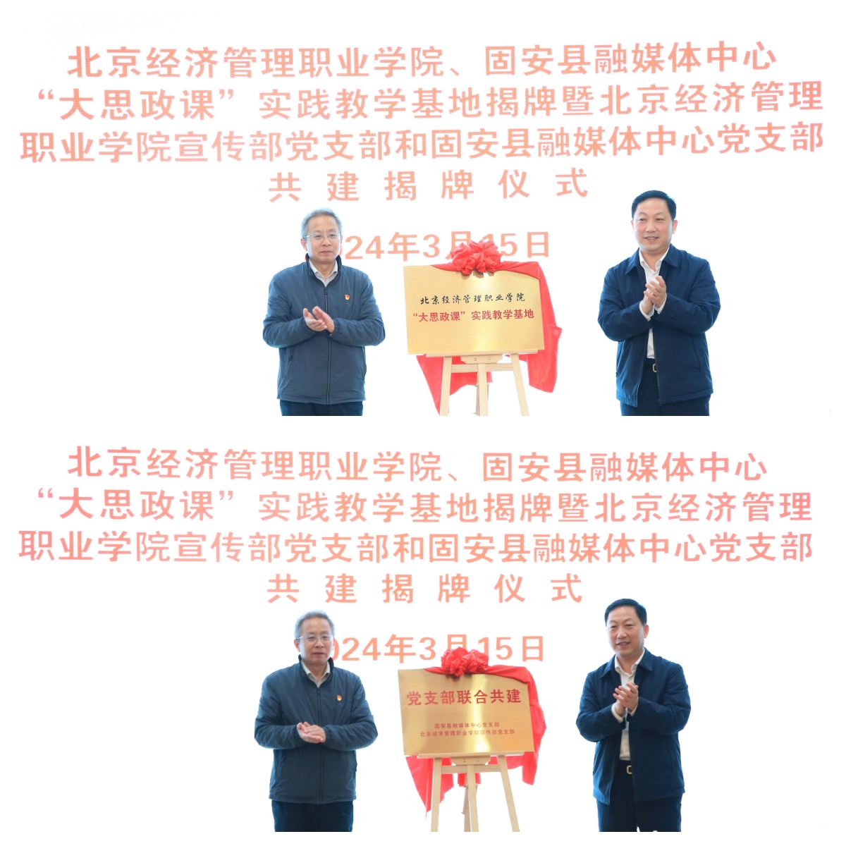 3月15日上午,bat365在线平台副书记范宝祥一行15人赴固安县融媒体中心举行“大思政课”实践教学基地揭牌暨固安县融媒体中心党支部和bat365在线平台宣传部党支部共建揭牌仪式。固安县委常委、办公室主任刘涛,县委宣传部常务副部长张仙明、县直工委书记刘晓茹,固安县融媒体中心主任李光辉、副主任刘龙智、赵振华、肖景坤参加共建活动。