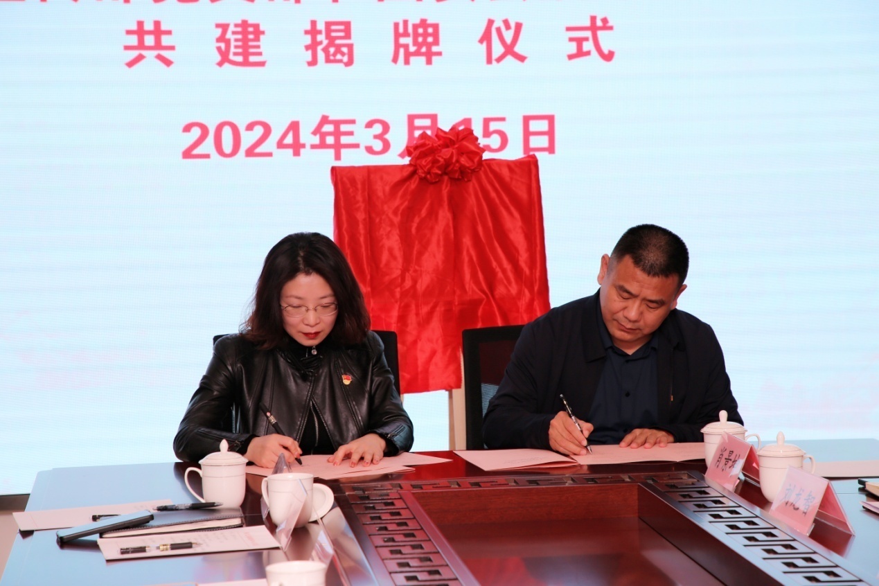 会上,刘涛与范宝祥为“大思政课”实践教学基地和党支部共建揭牌;李光辉与苑秀芹作为双方代表签订“大思政课”实践教学基地和党支部共建协议书。