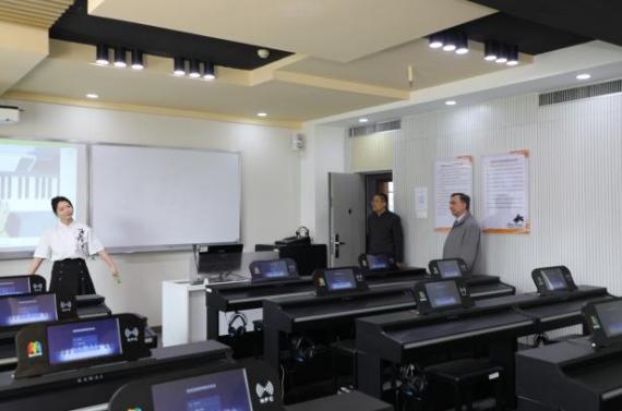 签约仪式之后,Alex Molasiotis一行参观了我院对接专业的实训基地,包括英语教学技能实训室、幼儿园班级活动教室、数字钢琴实训室、美育工作坊。通过参观,Alex Molasiotis更加直观地了解了对接专业的办学定位、特色课程、教学模式、学生风采。