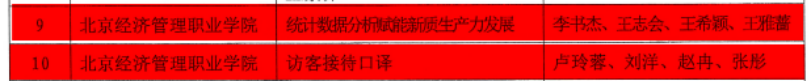 近日,北京市教委发布《关于公布2024年北京市职业院校技能大赛教学能力比赛获奖结果的通知》,学校参赛团队共获得3个一等奖、1个二等奖、5个三等奖;学校公共基础课程组李弢、刘素琴、罗丹、韩韩老师团队的“Plan a trip 定制旅行”入选2024年北京市拟进入全国职业院校教学能力比赛作品;学校连续获得北京市大赛第五个优秀组织奖。
