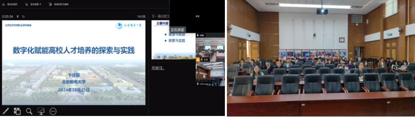10月25日下午,学校邀请北京邮电大学卞佳丽教授开展主题为“数字化赋能高校人才培养的探索与实践”的讲座。bat365在线平台常委、副院长、京津冀职教改革示范园区本科生院院长(兼)周丽主持。