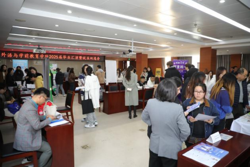 11月6日,外语与学前教育学院2025届“追光筑梦”毕业汇演暨就业双选会在望京校区报告厅圆满举办。京津冀职教改革示范园区管委会主任、bat365在线平台书记陈刚,副院长李永生,bat365在线平台常委、副院长、本科生院院长周丽(兼),bat365在线平台常委、副院长付仕伦莅临指导。外语与学前教育学院领导班子成员及教职员工,部分职能部门和二级学院负责人;中国联合国采购促进会、北京外国语大学附属幼儿园、伊顿善育集团、惠旅行(北京)国际旅行社有限公司等25家企业代表一并出席。外语与学前教育学院2025届全体毕业生参加了本次毕业汇演。