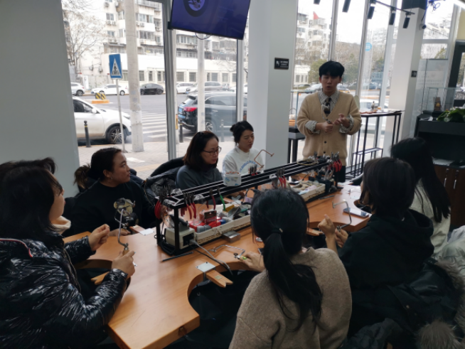 为弘扬中华优秀传统文化,加强国际文化交流,学校培训学院(国际教育学院)于11月28日组织国际学生走进学校创新创业基地“誉宝珠宝工艺体验中心”,体验“锼活”传统工艺。