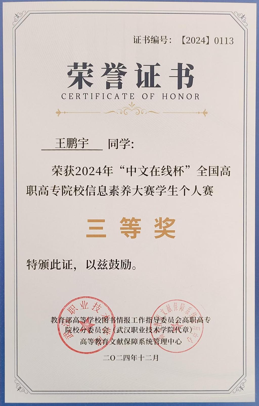 bat365在线平台学生在2024年全国高职高专院校信息素养大赛中荣获三等奖