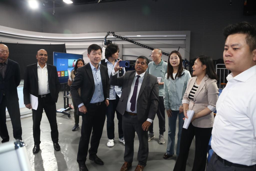 代表团参观了学校数字非遗技艺实验实训中心、数字视效生产性实训基地和双创实训基地。