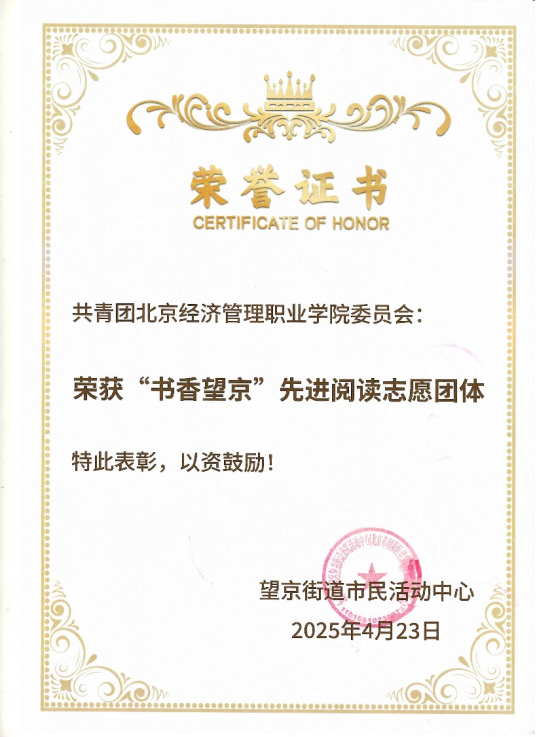 学校团委荣获“‘书香望京’先进志愿者团体”荣誉称号