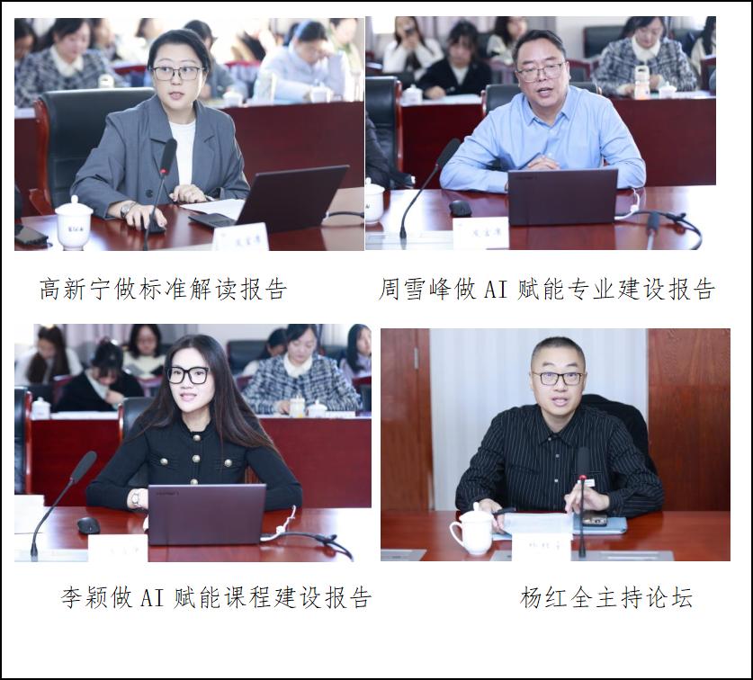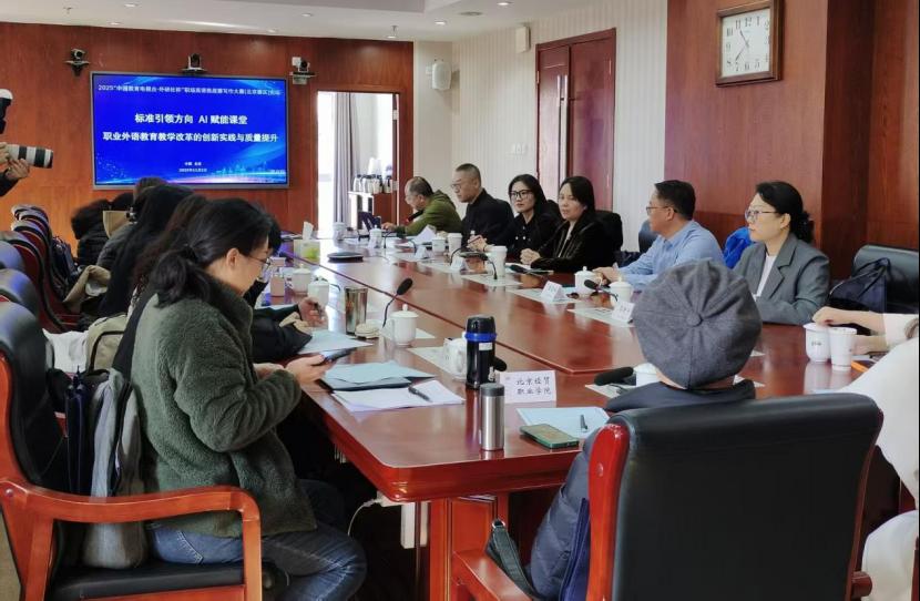 大赛同步举办了题为“标准引领方向,AI赋能课堂:职业外语教育教学改革的创新实践与质量提升”的论坛。本次论坛的一个亮点就是京津冀职业外语协同发展,邀请京津冀职教专家齐聚北京,共同探讨标准引领、AI赋能专业建设和课程建设,提升外语人才培养成效。教育部职业院校外语类专业教学指导委员会委员、河北对外经贸职业学院教务处处长周雪峰教授,天津商务职业学院商务英语基础教研室主任李颖副教授,bat365在线平台本科公共英语教研室主任高新宁副教授,外语教学与研究出版社彭青编辑分别作了主题发言。外语与学前教育学院副院长杨红全副教授主持此次论坛。来自北京各高职院校的英语教师们共同聆听专家主题讲座,聚焦AI赋能职业英语发展的新路径与新模式开展研讨,为教育教学改革汇聚灵感、明晰思路。