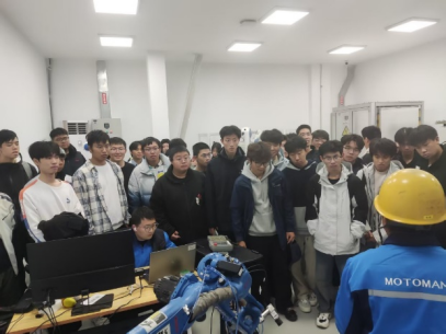 实习活动以“理论讲解 + 车间实操 + 互动答疑”的形式展开。同学们在企业展厅,通过图文介绍、机器人动态演示等方式,系统了解工业机器人在汽车制造、智能制造、物流仓储等领域的应用场景,以及安川首钢在机器人核心技术研发、产业生态构建等方面的核心优势。