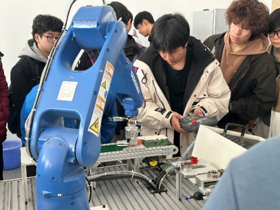 企业技术导师结合机器人工程专业的课程内容,详细讲解了工业机器人的机械结构设计、控制系统原理以及编程操作要点,同学们在导师指导下,通过操作面板完成了简单的机器人动作指令输入,亲身感受理论知识与实际操作的结合。