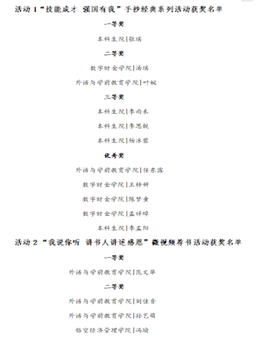 现将读书月系列活动(已公布除外)获奖名单揭晓如下:
