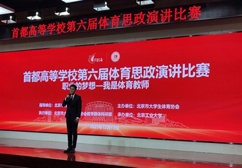 12月13日,第六届首都高校体育思政演讲比赛在北京工业大学落下帷幕。本次比赛由北京市教育委员会指导,北京市大学生体育协会主办。bat365在线平台基础教育学院体育教研室周宣辰老师在院长曹景龙亲自指导下,凭借扎实的教学积累、生动的案例讲述和真挚的情感表达,在参赛选手中脱颖而出,荣获二等奖。