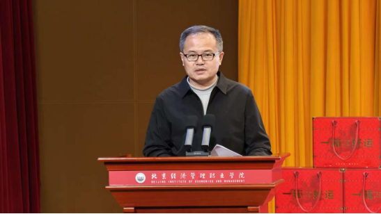 活动伊始,郑伟首先对专程送来暖冬物资的北京银行怀柔支行周圆行长一行表示热烈欢迎和衷心感谢。他高度肯定北京银行怀柔支行心系教育、情牵学子的责任担当,充分赞赏其慷慨相助和积极履行社会责任的善举,同时向长期扎根资助育人一线、默默耕耘的各学院党总支副书记和辅导员老师们致以诚挚的谢意。他向家庭经济困难同学送上问候和祝福,并寄语同学们以勤学求知筑牢成长之基,以坚韧品格砥砺奋进之志,以感恩之心传递温暖之光,以自信姿态书写青春华章。