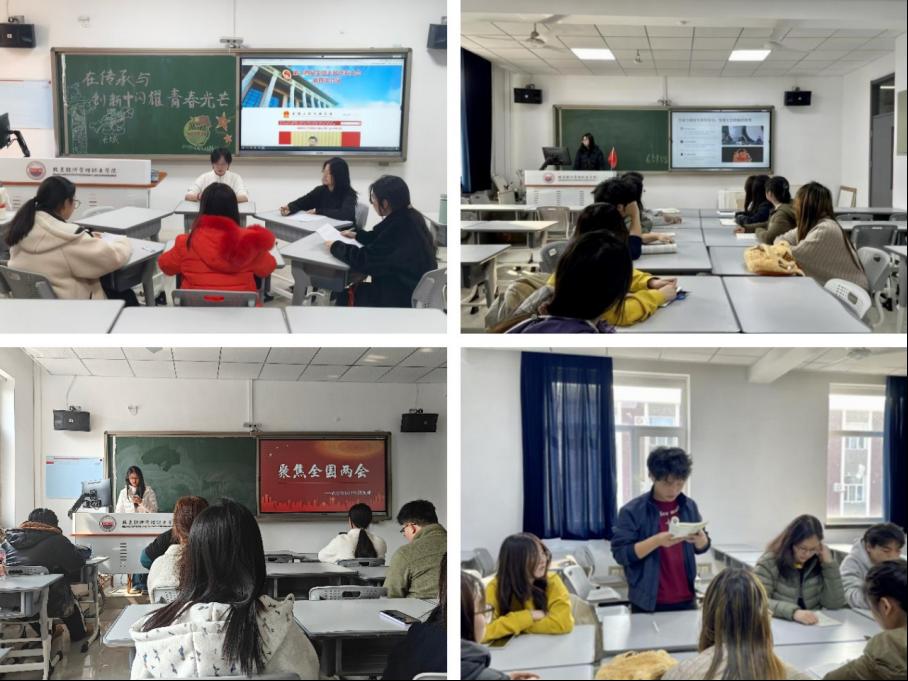 本科生院组织各团支部开展形式多样、特色鲜明的主题学习活动。2025110051团支部融合财会专业特色,通过专题学习、交流研讨、微宣讲及诚信承诺仪式等环节,让全国两会精神学习与专业认知、职业素养培育深度结合。2024110083团支部搭建多元学习平台,组织专题学习、思想研讨与“两会青年说”特色活动,通过团员分享、观点碰撞推动全国两会精神入脑入心。2025110052团支部以专题学习会、主题交流研讨会为载体,结合“两会青年说”微宣讲,全方位解读两会核心部署,凝聚青年奋进共识。2025110073团支部规范开展专题学习会,通过课件生动讲解、全国两会热点视频观看、分组交流探讨,由班主任总结升华,构建了“学、思、悟”一体化学习模式。2024110021团支部创新形式,推出“两会关键词・谁是卧底”趣味互动、“对话2035年的自己”主题分享等特色活动,让全国两会精神学习在轻松氛围中走深走实。