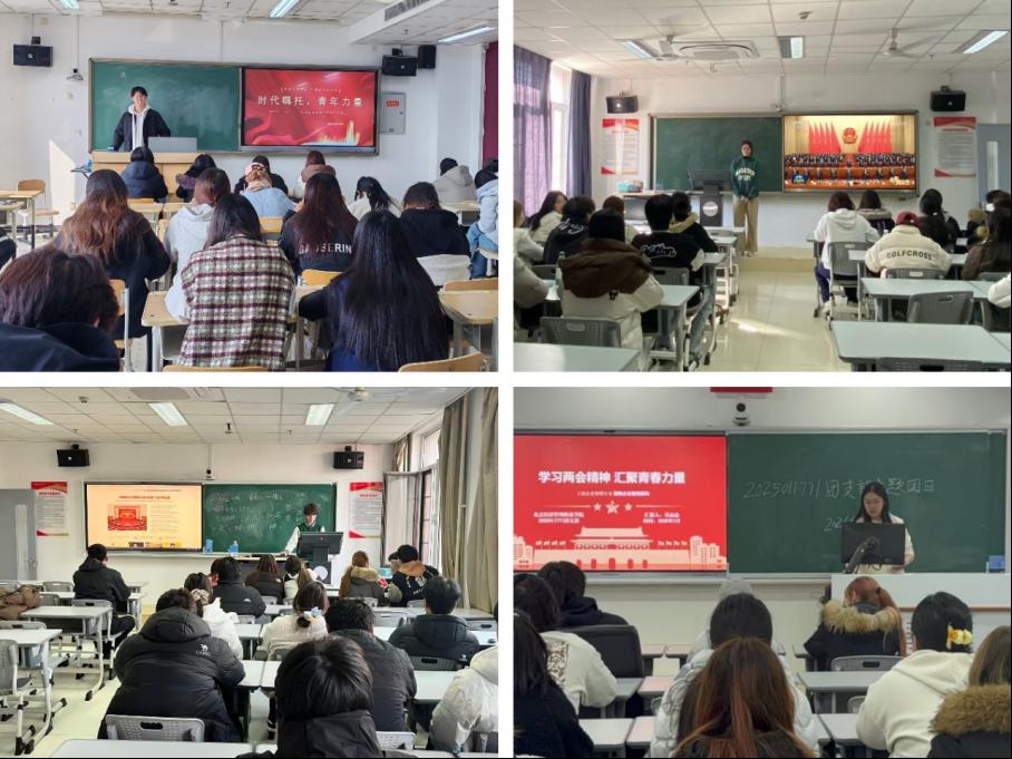 临空经济管理学院紧扣专业特色与青年成长,组织各团支部开展形式丰富的全国两会精神学习主题团日活动。2025011761团支部围绕学、看、谈三个环节,结合国际商务、跨境电商专业特色解读外贸相关全国两会内容,组织团员畅谈职业梦想,明晰个人发展与国家战略的联系。2024010151团支部开展“我与‘十五五’共奋进”主题交流分享会,紧扣旅游管理专业特色,围绕党史学习教育与专业成长融合、智慧旅游发展等议题展开研讨,让团员在交流中锚定青春奋斗坐标。2024011461团支部以齐唱团歌开启主题团日活动,通过全国两会精神微学习、青春微感悟分享、青春倡议等环节,结合国际商务专业解读两会部署,凝聚团员以专业所长服务国家发展的奋进力量。2025011771团支部结合工商企业管理专业特色开展主题团日活动,通过热点解读、专业研讨、担当倡议的形式,对接产业升级与“智改数转”议题,引导团员以专业能力赋能企业发展,将职业规划融入国家产业升级大局。