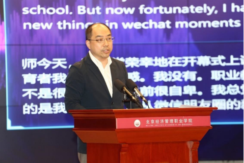 学校“双师型”教师代表、外国语学院教师闫晗用流利的英语以科大讯飞同声传译的方式做了题为《数字技能,使职业教育更出彩》的精彩演讲。
