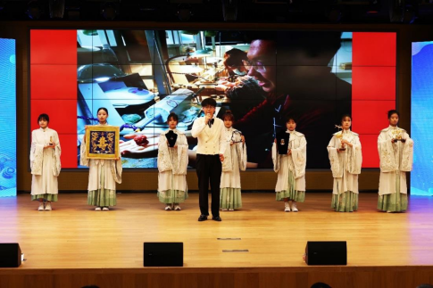 开幕式的最后,学校师生现场进行了系列技艺技能展演。工程技术学院应用电子技术专业的学生为大家表演了智能机器人装调技能,机器人在学生的遥控下唱歌、跳舞,表现出了学生们熟练地技能操作和扎实的理论功底;珠宝与艺术设计学院学生们身穿汉服霓裳,依次上台为观众展示学生作品,表现了来自珠宝学子中国传统手工工艺制品的魅力;管理学院的空中乘务专业以民航服务岗位对良好形象、礼仪素质及安全应急技能所提出的高标准要求为基础,展示了民航形体规范、服务礼仪和客舱应急处置技能,体现出国门服务良好的精神面貌和职业素养,彰显了空中乘务专业校企深度融合的办学成果。